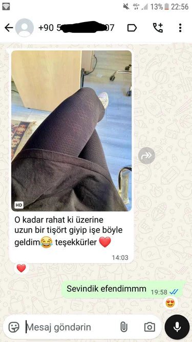 "Varis problemim için doktorum kompresyon tayt önerdi. Taytella hem kaliteli hem de şık. Tüm gün ayakta çalışıyorum ve bacaklarım artık yorulmuyor. Çok memnunum!"