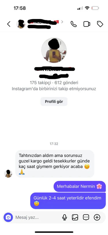 Günlük kullanım: En az 6-8 saat giymeniz önerilir.